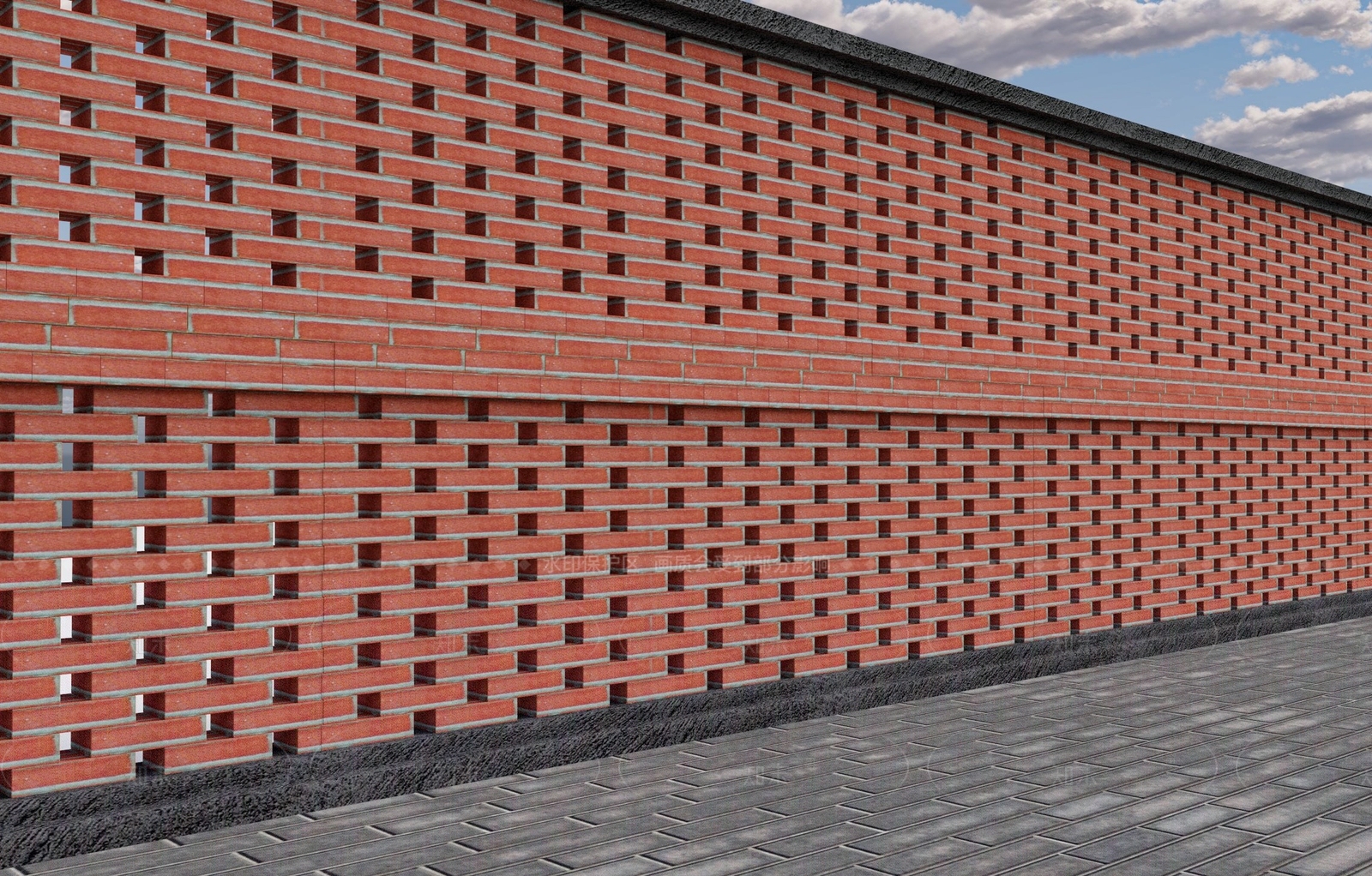 - 新中式景墙 乡村砖块矮墙 乡村镂空文化矮墙