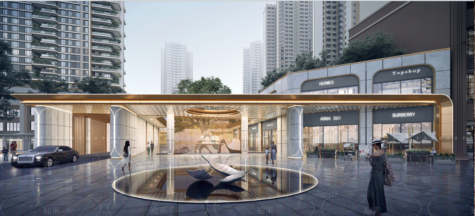 - 新中式小区建筑 现代展示区 现代沿街商业 现代大门景观 多层商业