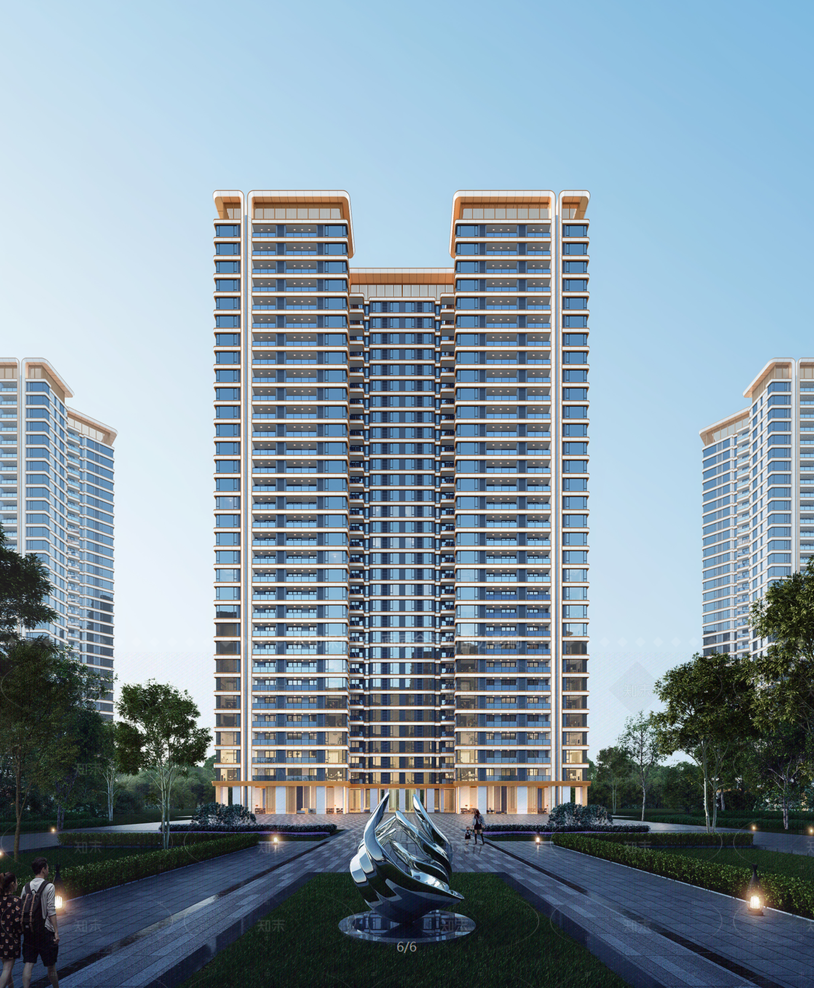 - 现代简约高层住宅 现代高档住宅楼 高层住宅 高品质住宅 轻奢金属感住宅 流线曲面