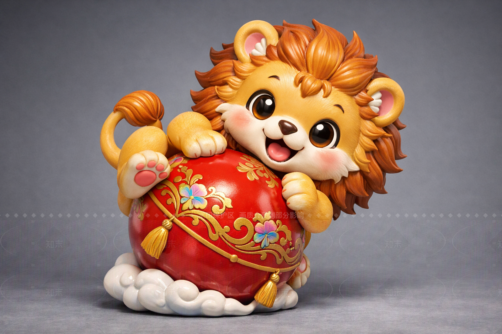 现代新中式雕塑 狮子滚绣球 雕塑 美陈 AIGC 动物雕塑