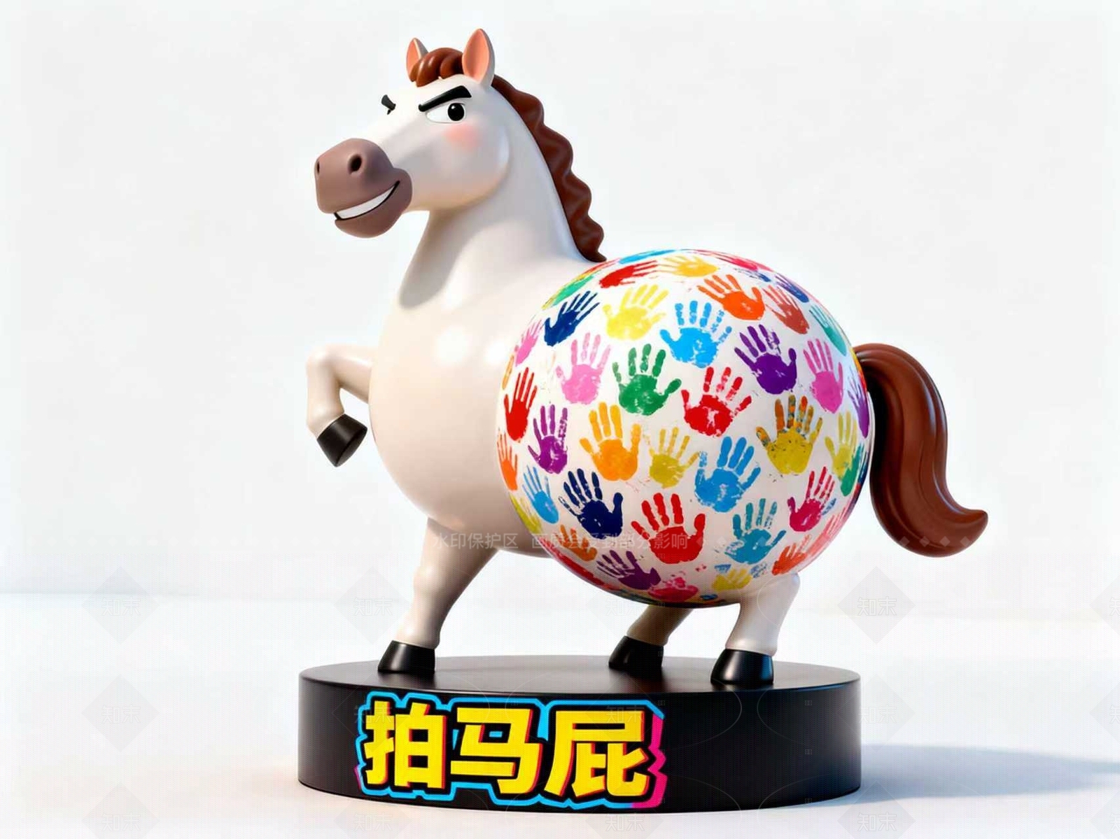 现代新中式雕塑 马雕塑 彩掌马屁马 萌马掌印款 趣马马屁款 拍马屁摆件装置