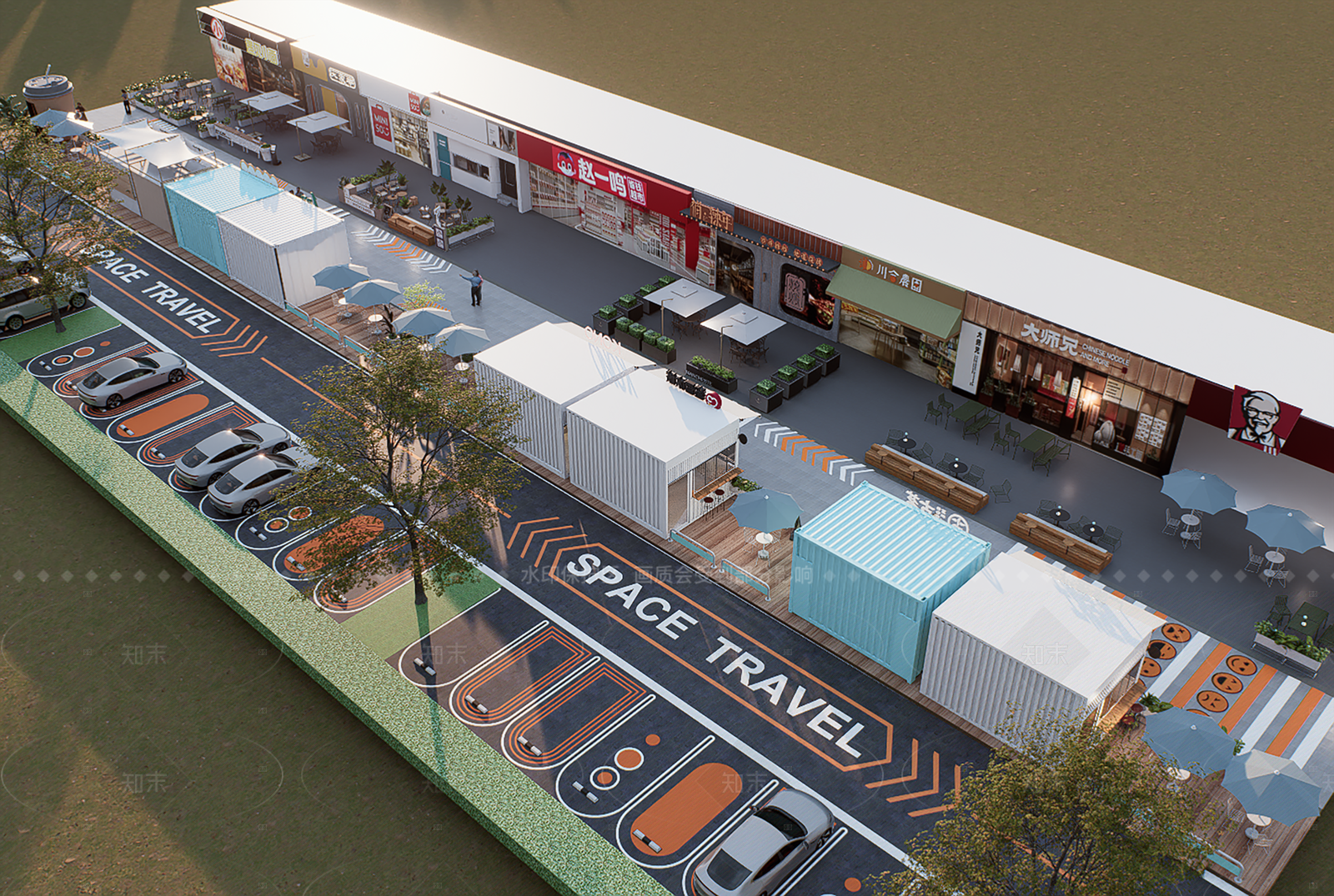 现代简约商业综合体景观 现代集装箱集市 现代街区 创意停车位 网红商业街 商业外摆