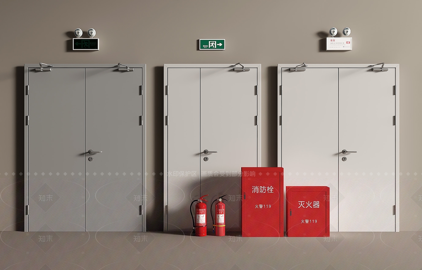 现代双开门 消防双开门 消防门 消防子母门 灭火器 安全出口
