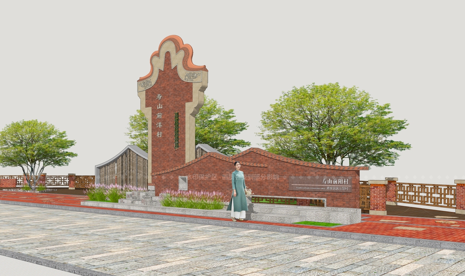 - 新中式精神堡垒 乡村精神堡垒 村标 村牌 乡村标识牌 岭南景墙
