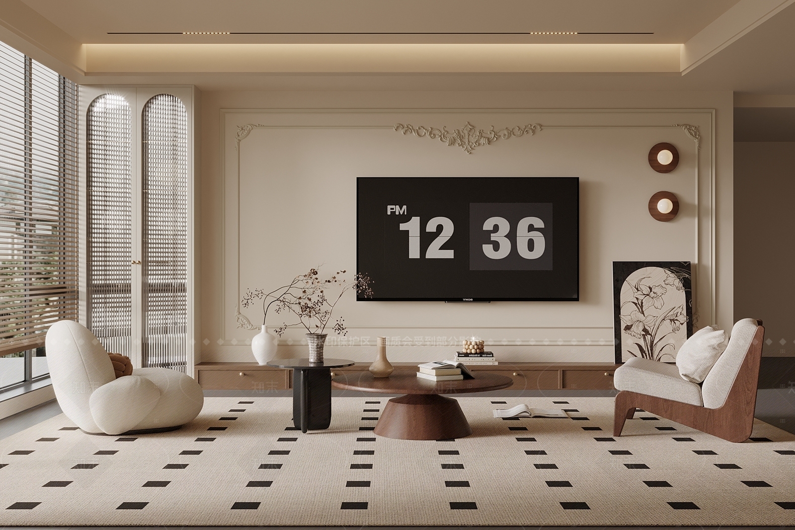 - 法式家居客厅 客厅沙发茶几组合 电视背景墙 客厅沙发