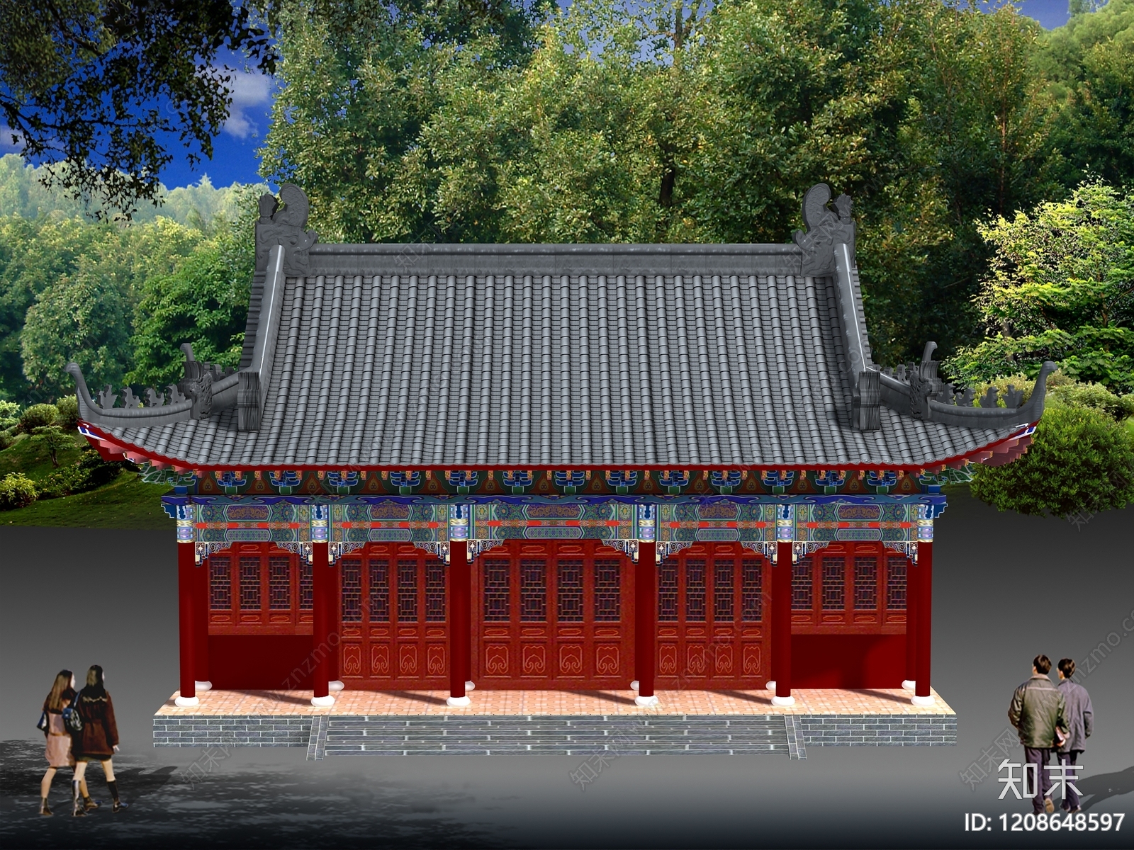 中式古建筑 中式古建五门殿 中式寺庙大殿 中式仿古大殿