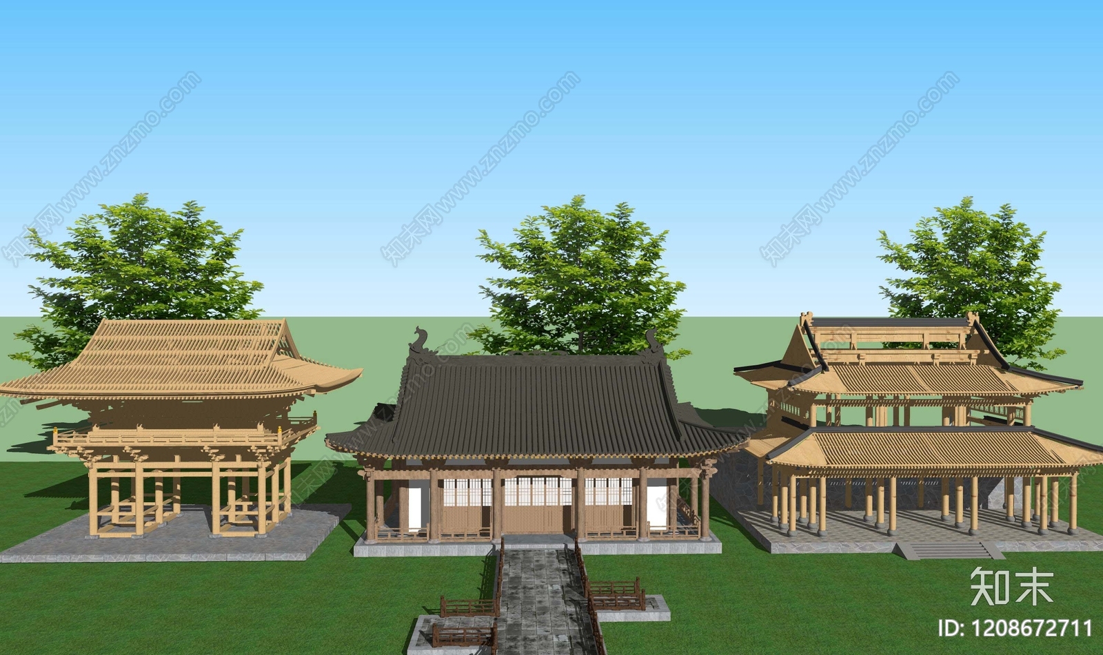 - 中式古建筑 仿古建筑 重檐庑殿顶 仿唐木结构