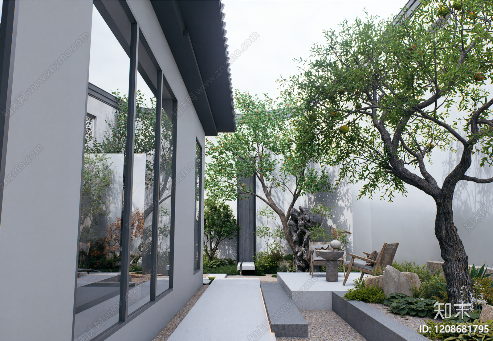 - 新中式别墅庭院 新中式庭院 休息庭院 景观庭院 别墅庭院