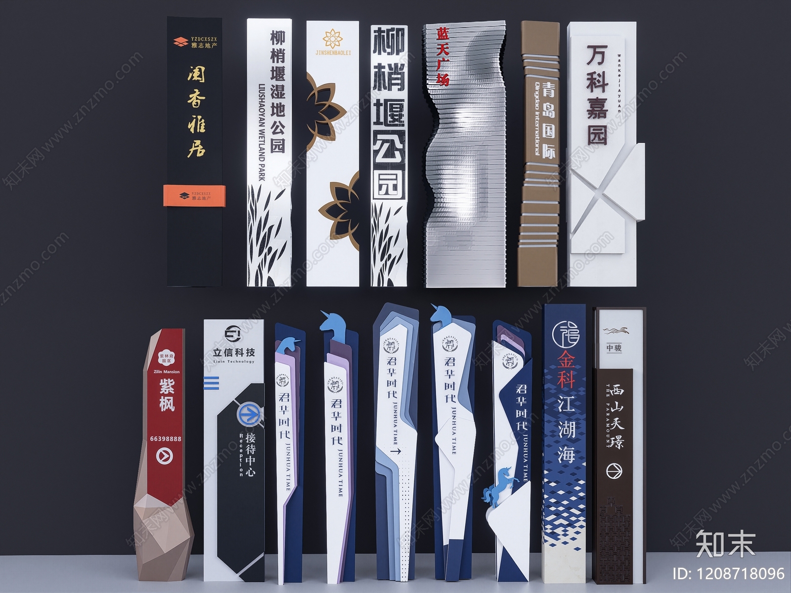 - 现代简约精神堡垒 科技导视 现代导视 导视立柱 月球基地 公园导视