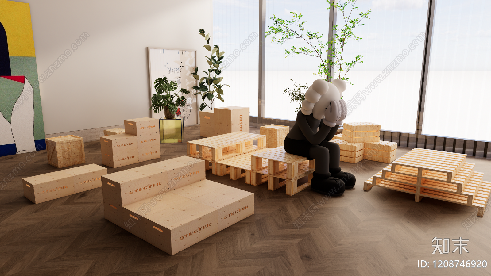 现代艺术装置 室内艺术装置 网红打卡 媒体装置 木箱 木架