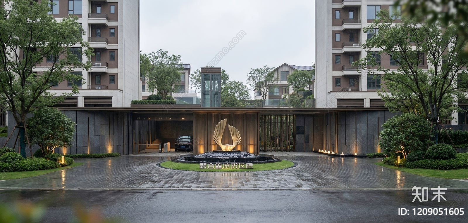 - 新中式景观小区景观 住宅入户 住宅单元入户
