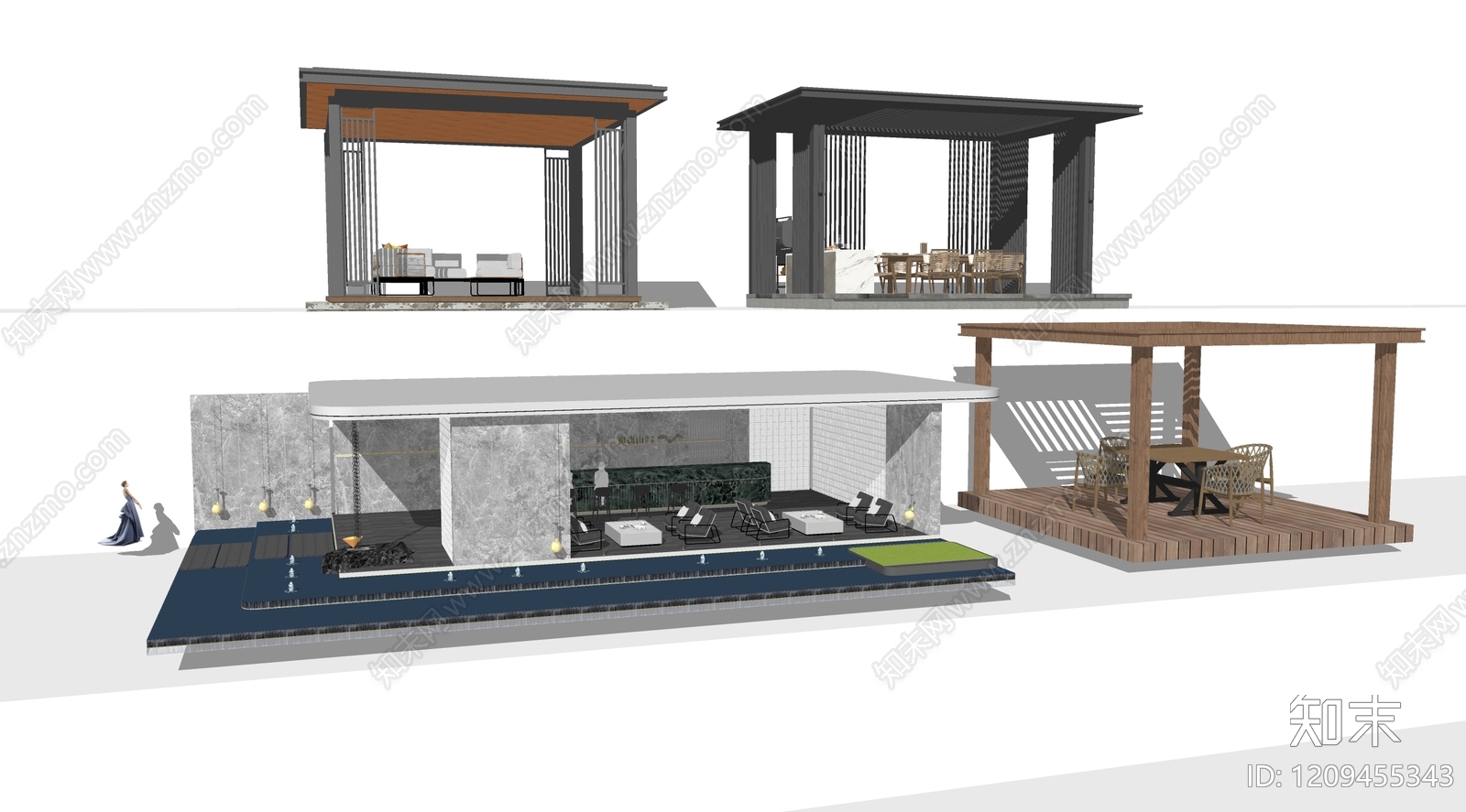 - 新中式廊架 现代景观廊架 花架 长廊 凉亭 廊亭