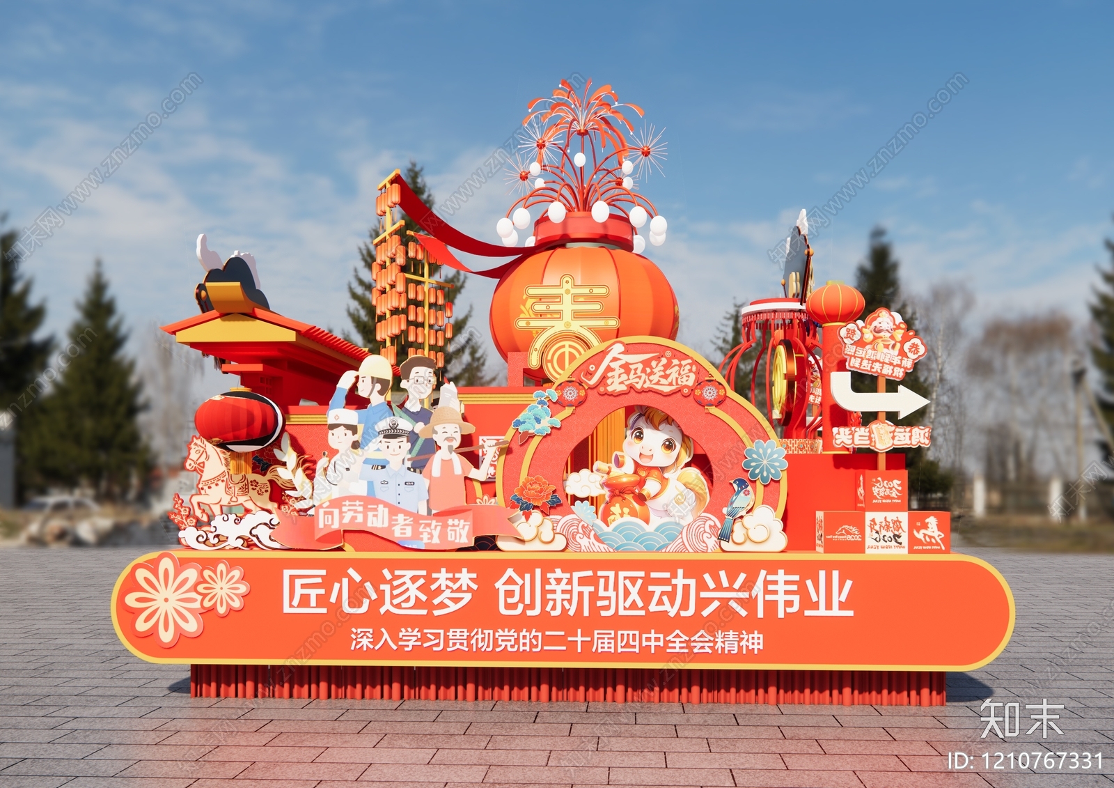 现代新中式春节美陈 花车 彩车 2026年 春节装饰