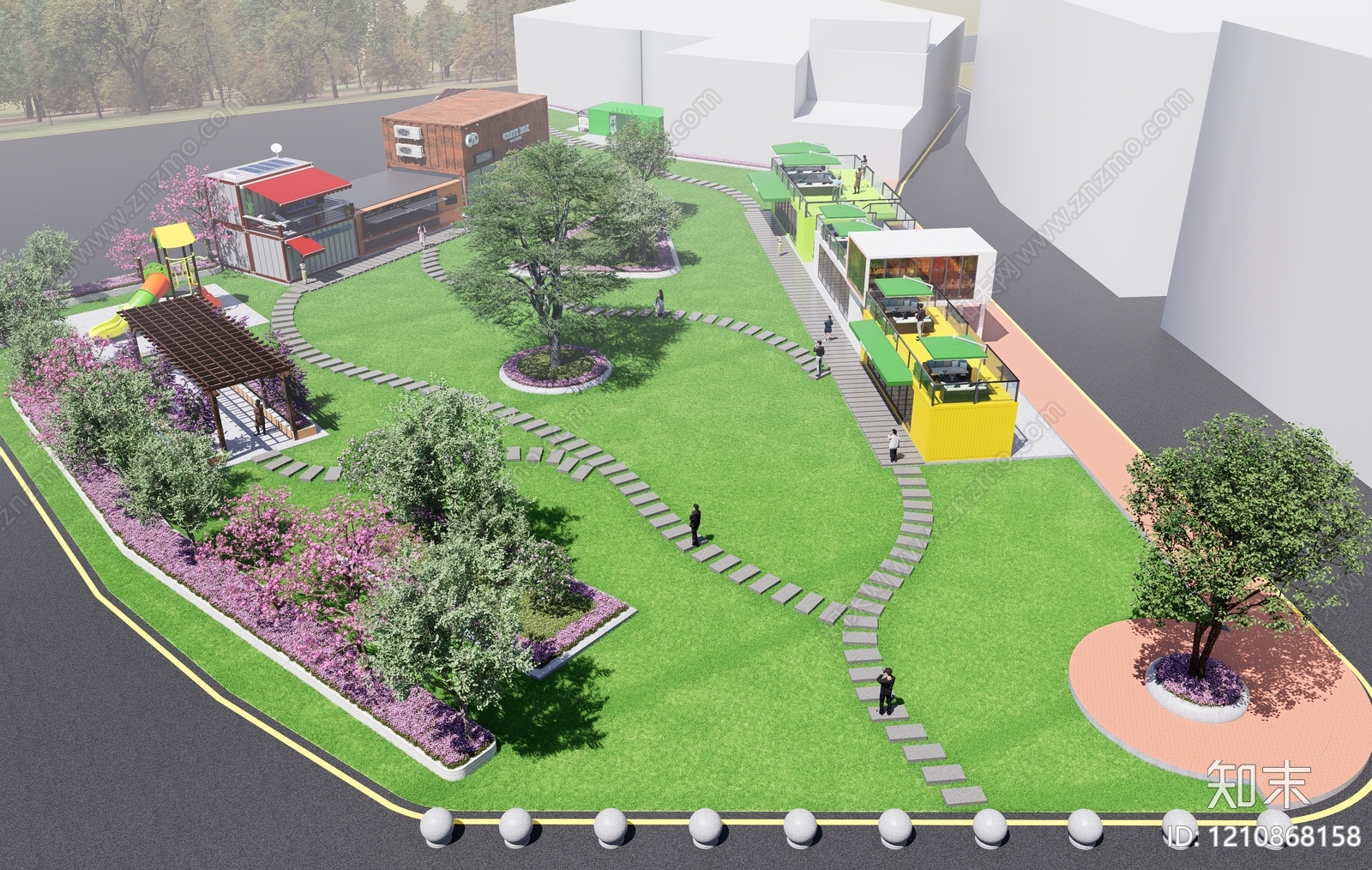 现代新中式商业综合体景观 示范区景观 集装箱商业街 5D渲染 商业广场 美食文化广场