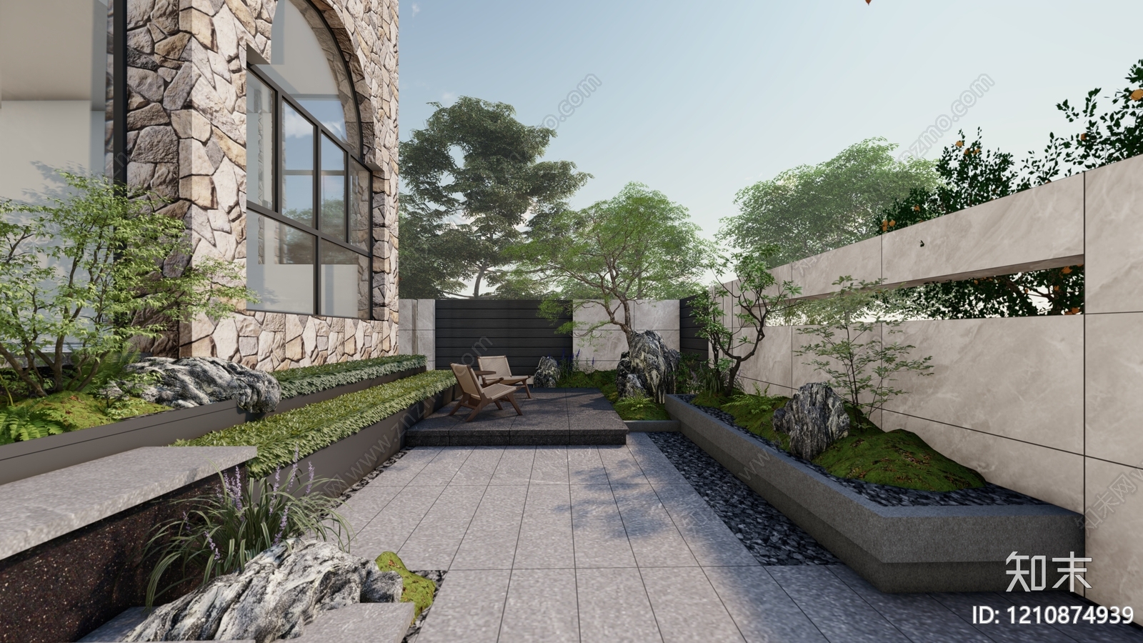 - 新中式景观别墅庭院 中式庭院花园 园林景观 枯山水