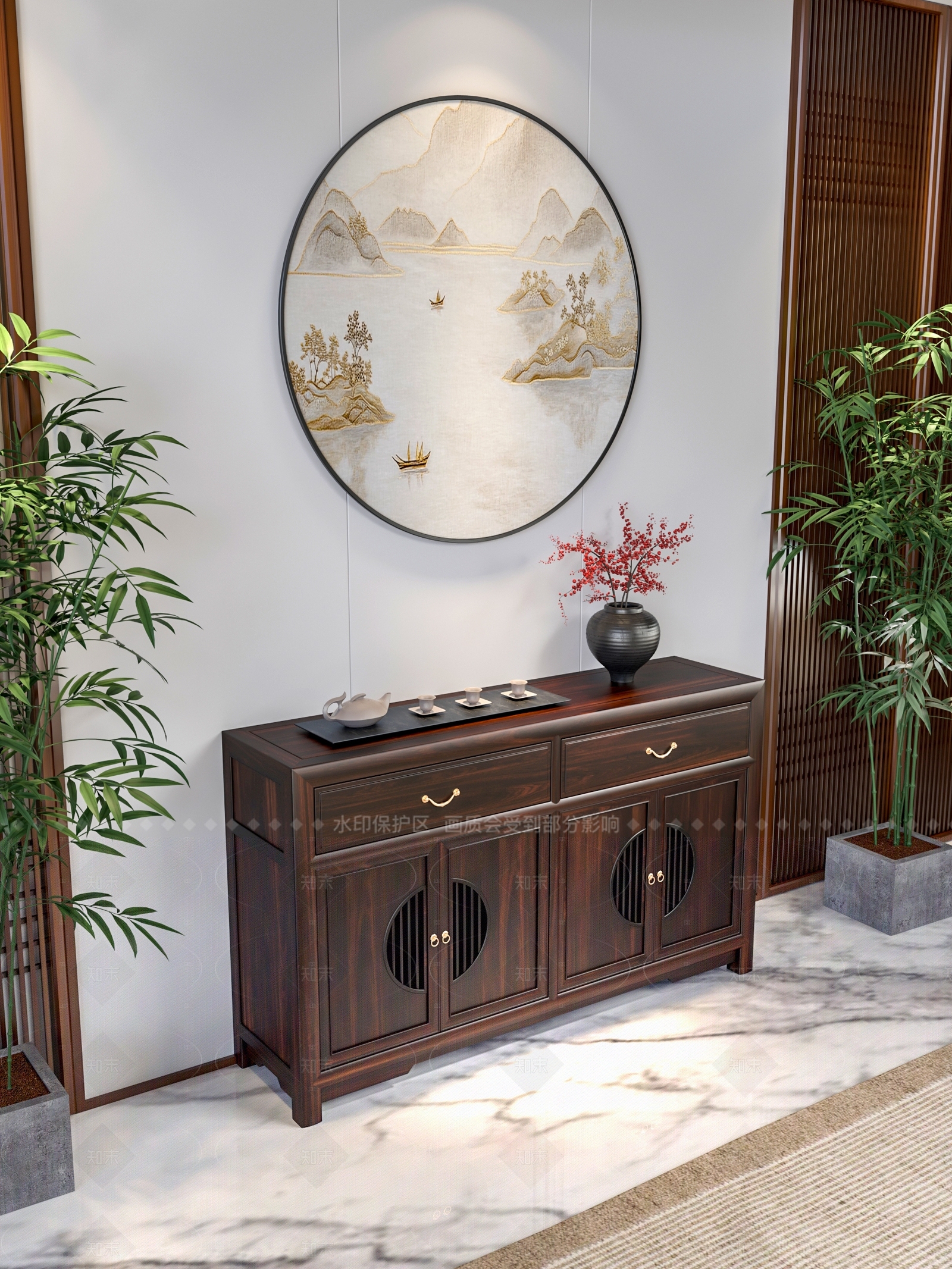 新中式玄关柜 玄关柜 边柜 储物柜