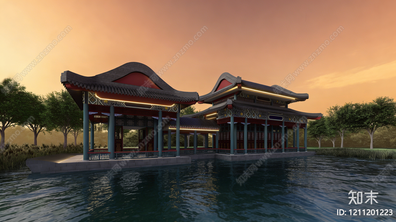 - 新中式古建筑 园林水榭 古典凉亭 休憩亭 景观园林亭子 景亭