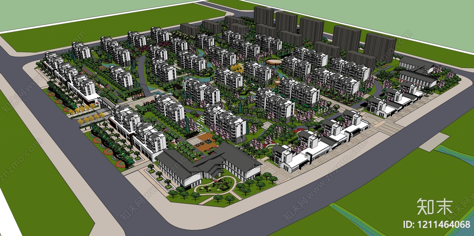 新中式小区建筑 徽派建筑 小区景观 水系景观 整体小区 徽派景观