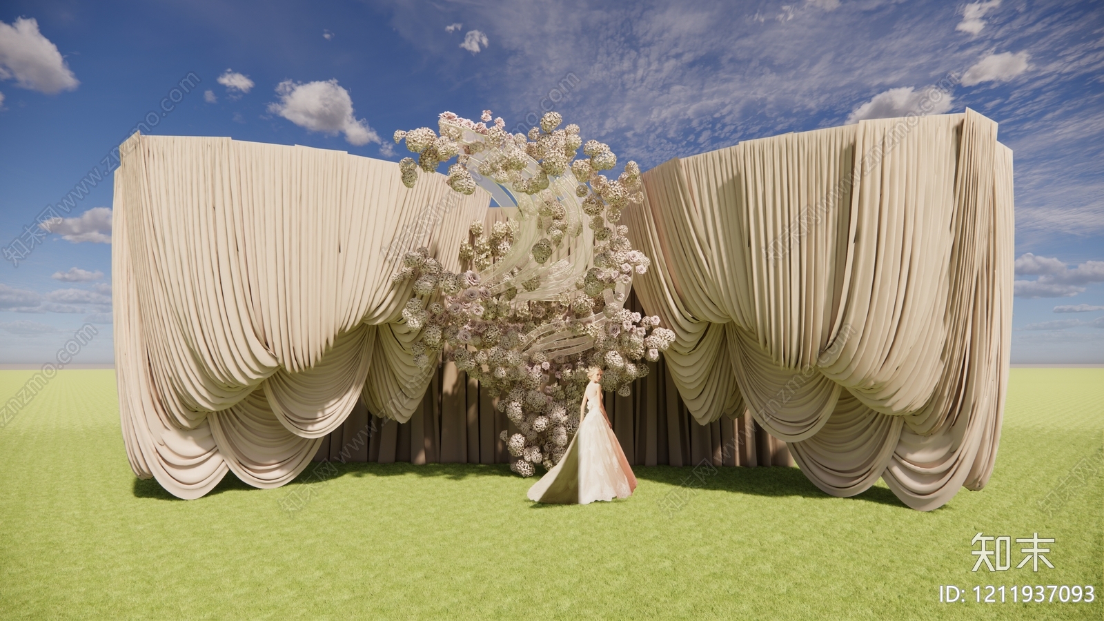 - 侘寂风其他美陈 布幔剧场风婚礼 挽布造型背景 绣球花艺花墙