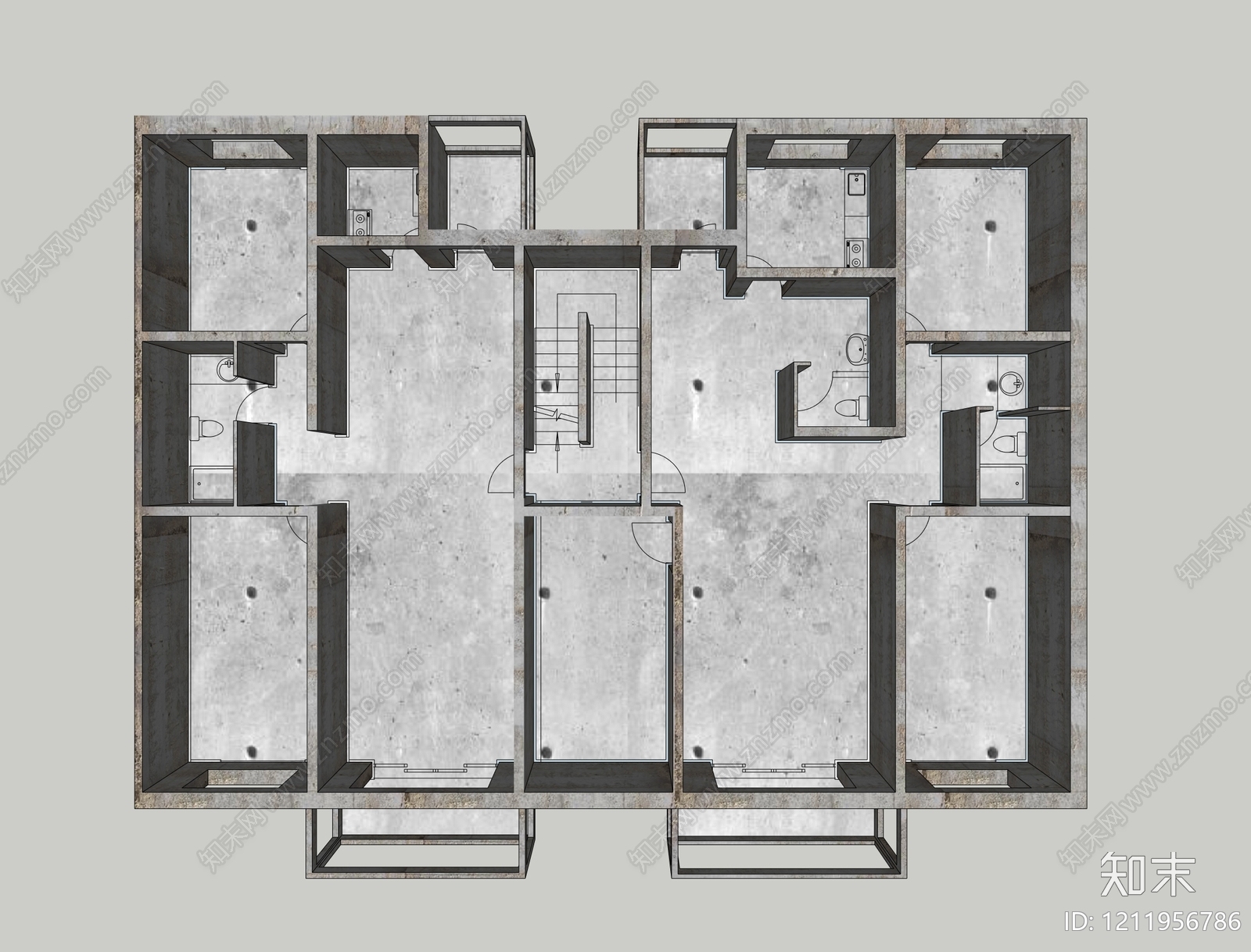 极简主义多层住宅 毛坯 家庭户型 三室两厅 单元楼