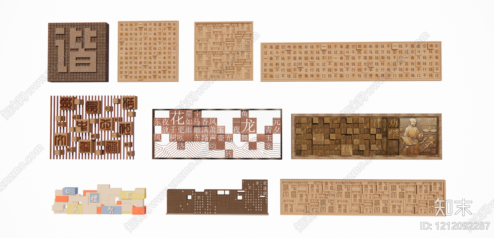 新中式景墙 活字印刷文化景墙 金属雕刻字体小品 方块文字矩阵景墙 篆刻印章文化景墙 模块字模拼贴小品