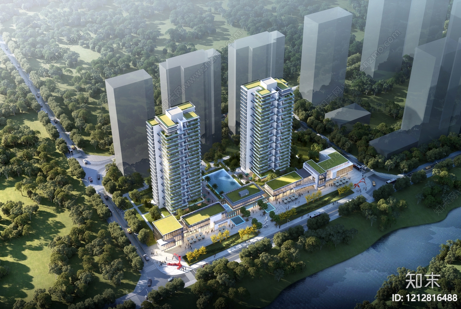 现代主义小区建筑 现代风格 四代住宅 商业街 高层住宅 box商业