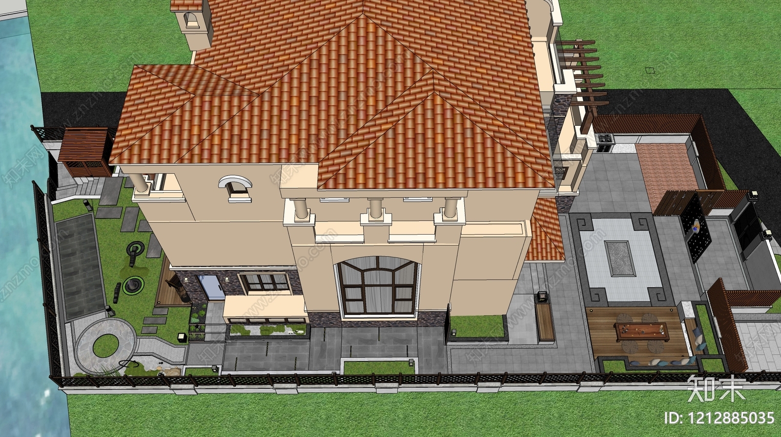 新中式别墅庭院 围墙围栏 禅意小品 工具房 景墙操作台