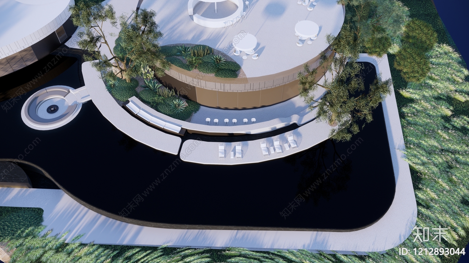 - 现代简约小区景观 小区景观 曲线景观