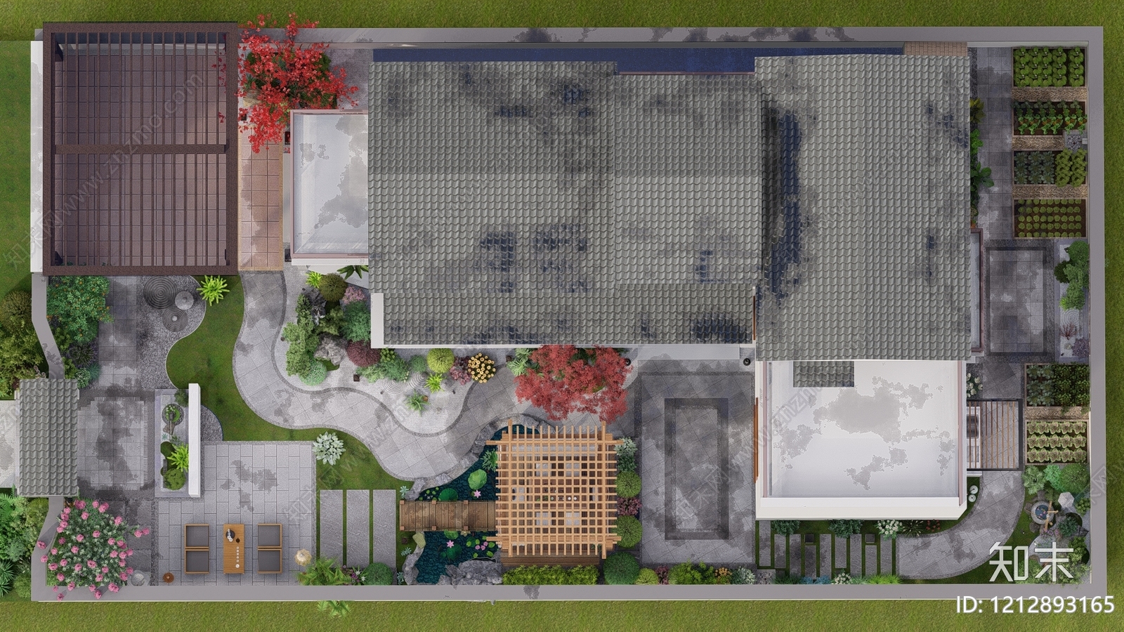 - 日式禅意别墅庭院 日式禅意别墅庭院 日式花园 复古自然 老石板仿古砖
