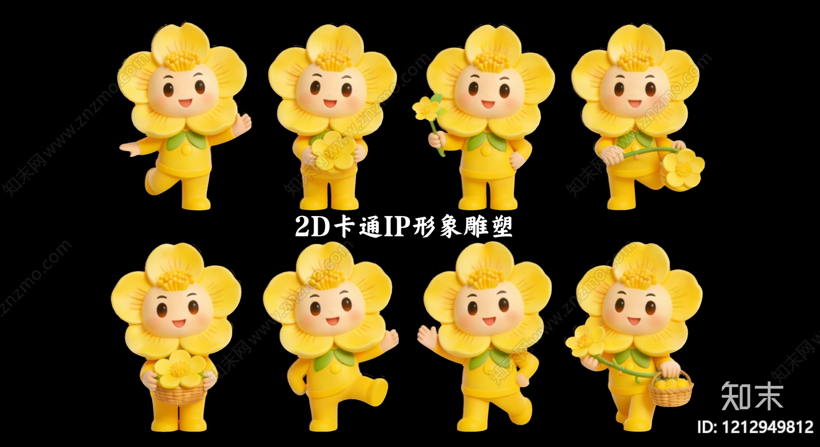 卡通雕塑风IP形象 金花茶植物2D 卡通动物IP形象