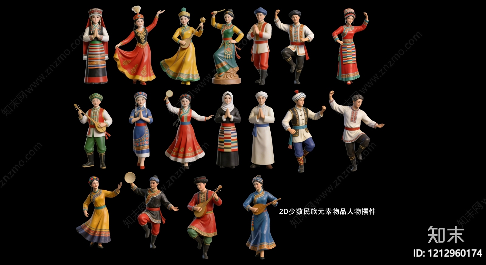 新中式摆件组合 2D少数民族元素 人物物品摆件