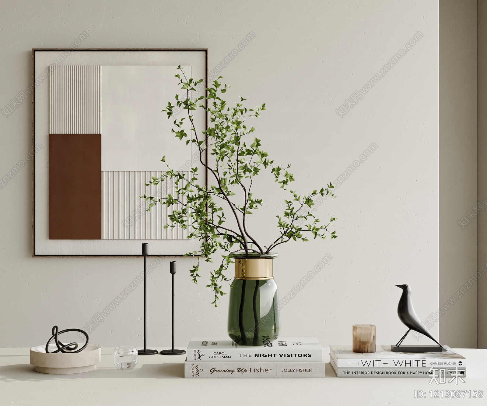 现代摆件组合 现代装饰摆件 摆件组合 花瓶绿植 书籍 装饰画