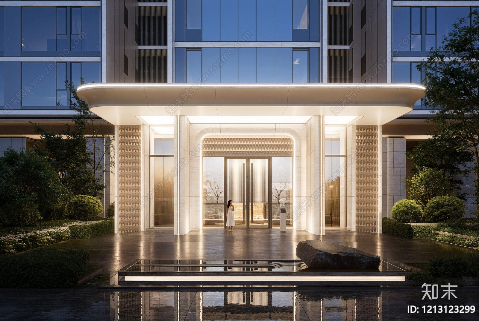 - 现代轻奢高层住宅 高层大平层建筑 入户门头景观 首层架空 精工立面 轻奢住宅建筑