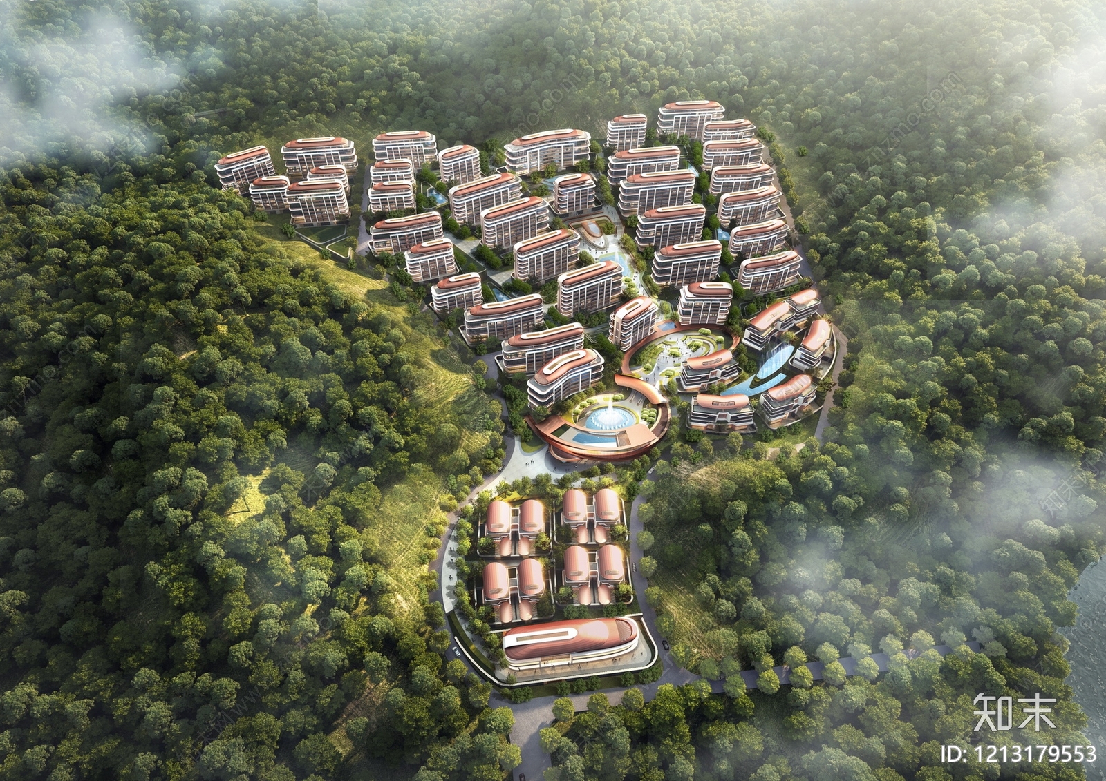 - 新中式鸟瞰规划 住宅景观 住宅小高层景观