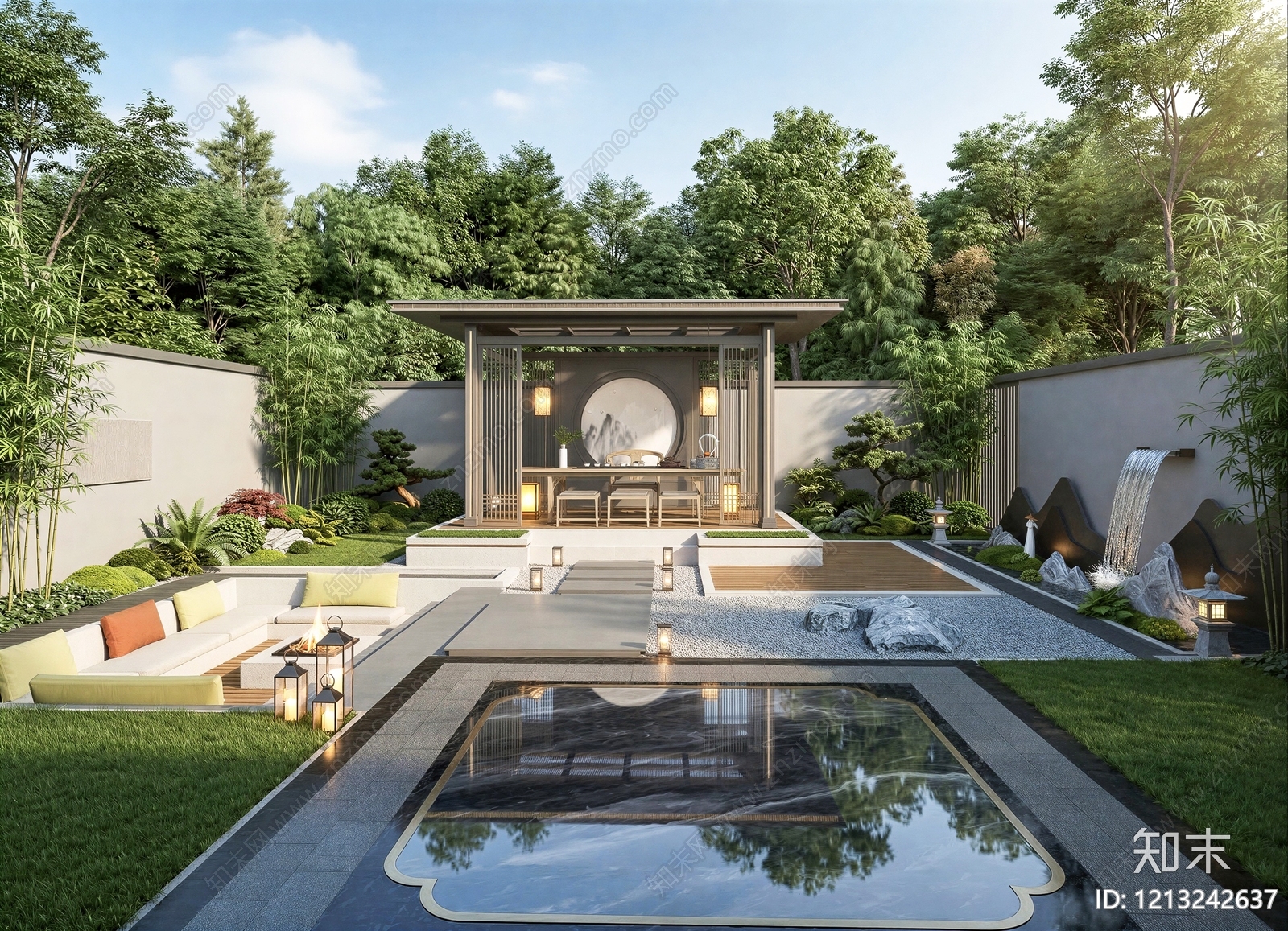 - 新中式别墅庭院 庭院景观