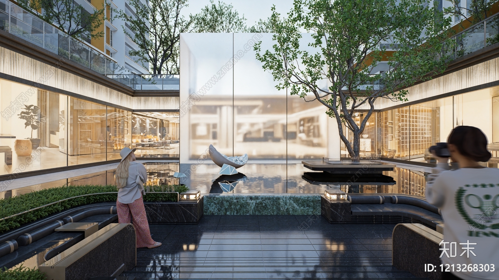 现代简约小区景观 下次庭院t 庭院景观 中庭水景 下沉卡座