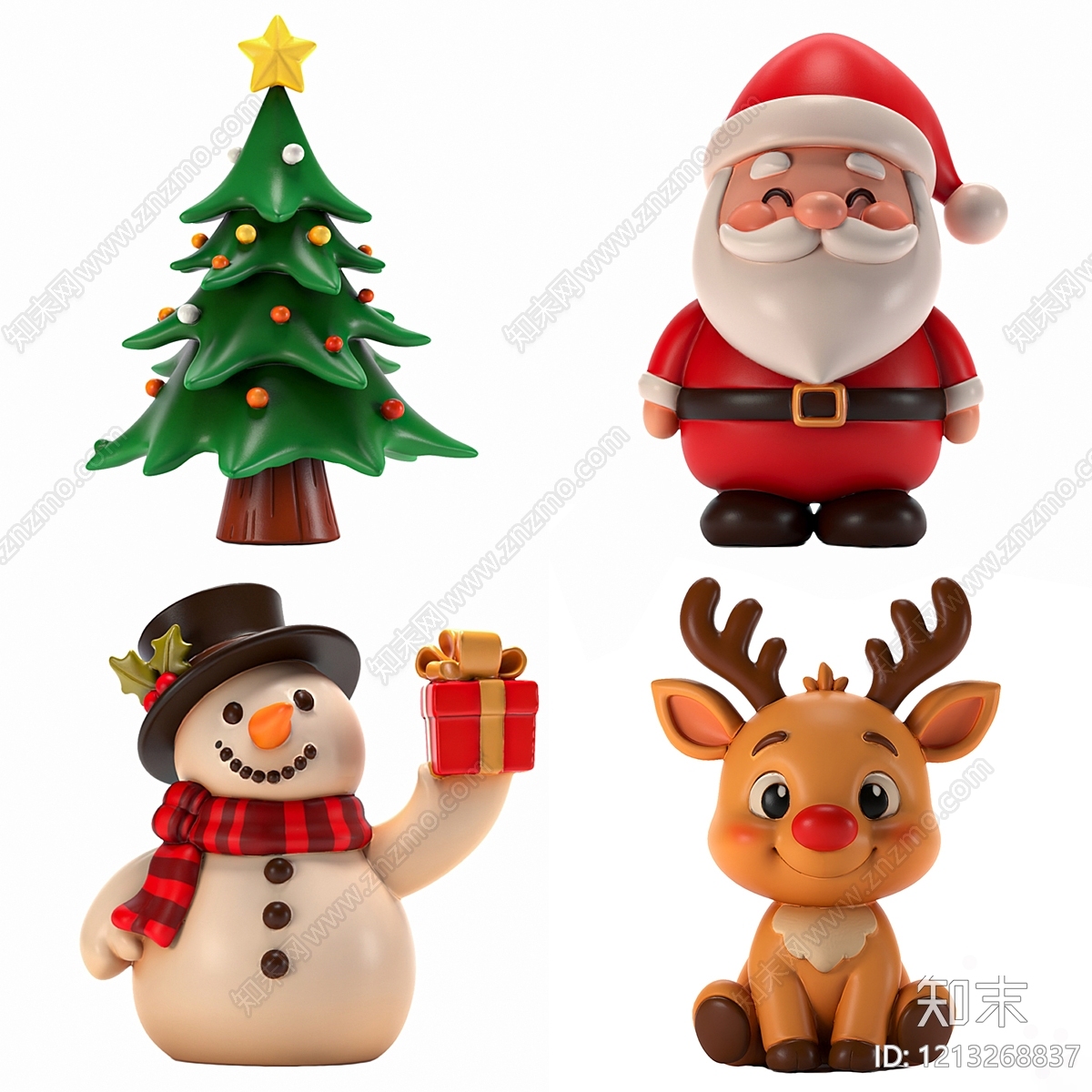 卡通3D风格摆件组合 圣诞卡通摆件组合