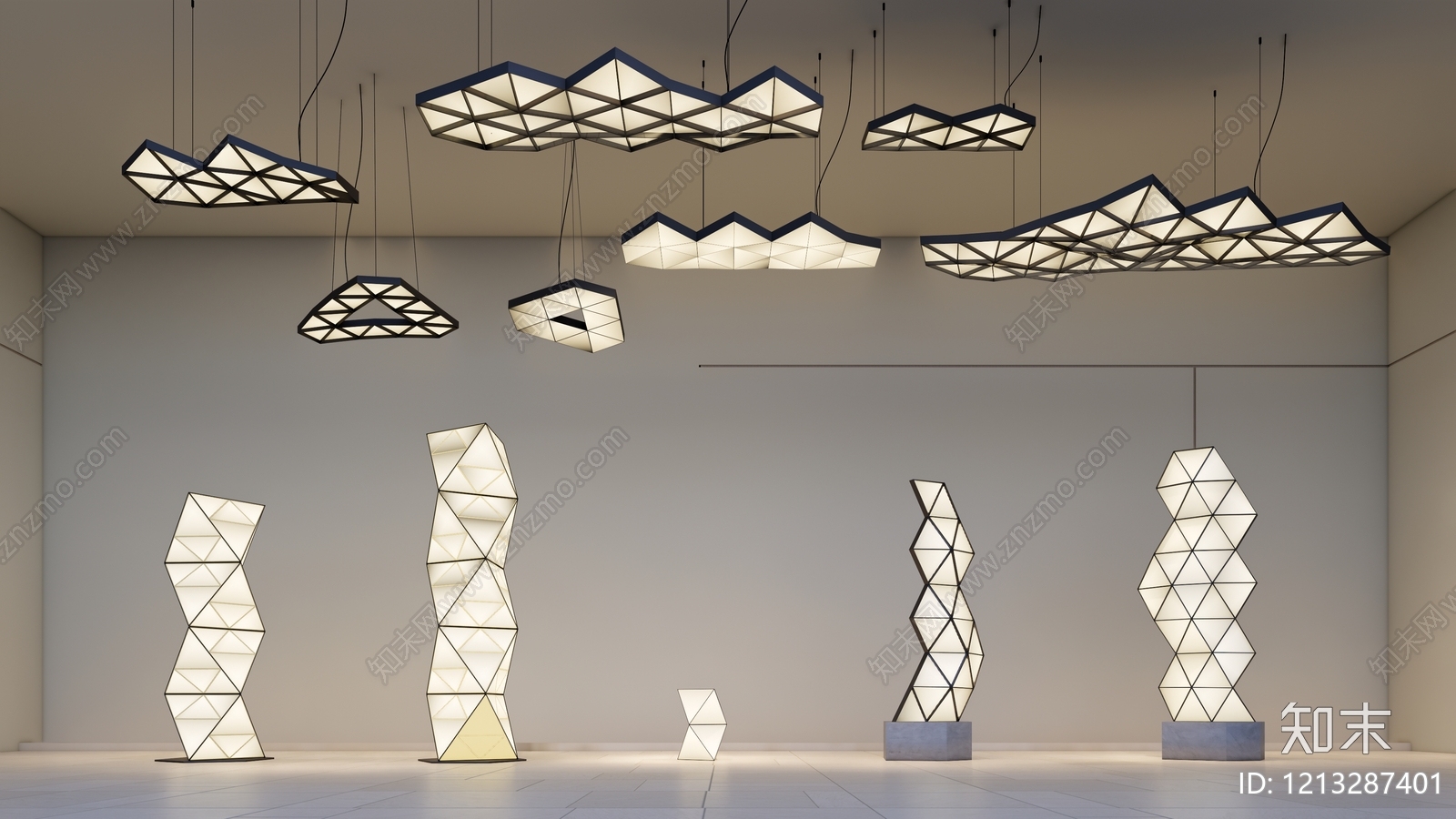 - 极简主义灯具组合 tokiot 日本品牌几何灯具 办公室三角形吊灯 现代餐厅吊灯 折线造型落地灯