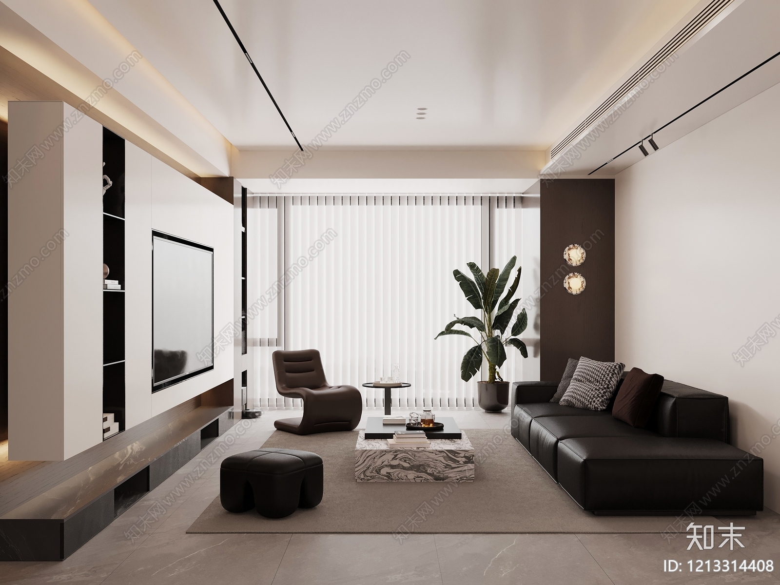 现代极简家居客厅 客厅 沙发茶几组合 电视背景墙