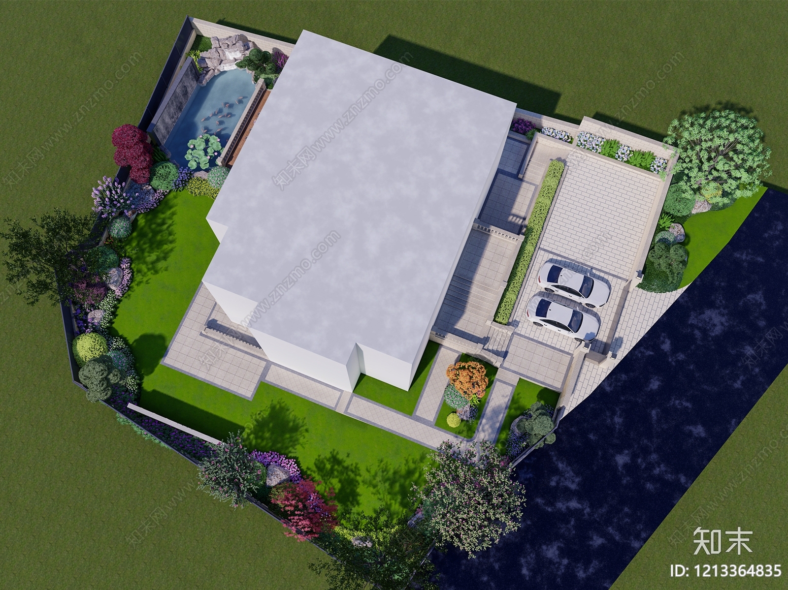 - 新中式别墅庭院 庭院景观 别墅花园 别墅庭院