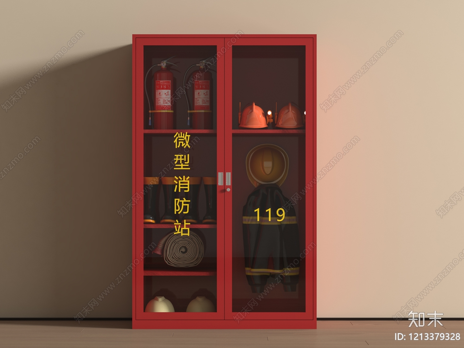 现代其他柜子 现代消防器材柜 强光手电 防爆头盔 警棍 防爆钢叉 灭火器 防火衣