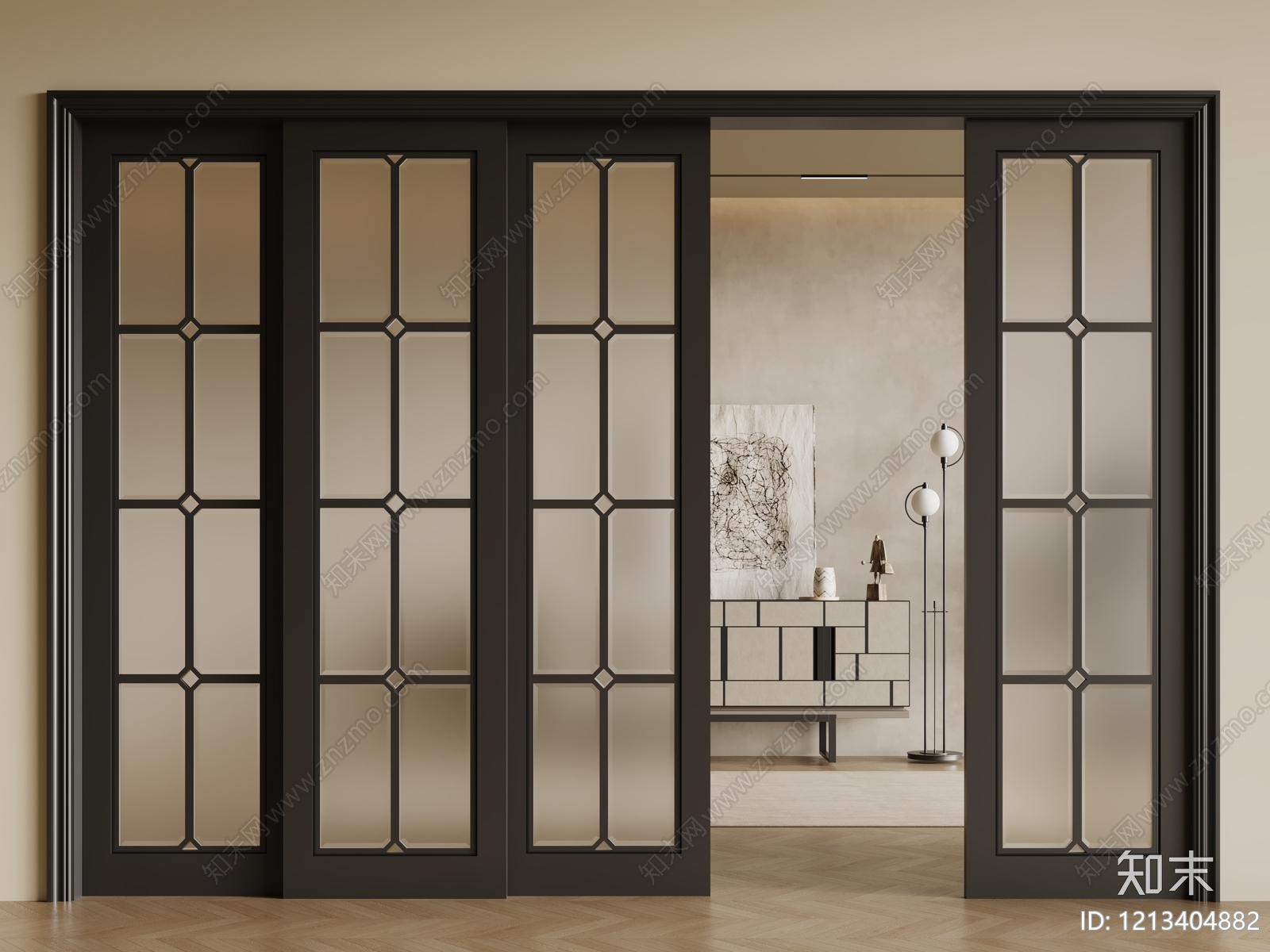 - 现代简约推拉门 推拉门 玻璃推拉门 花池 植物堆