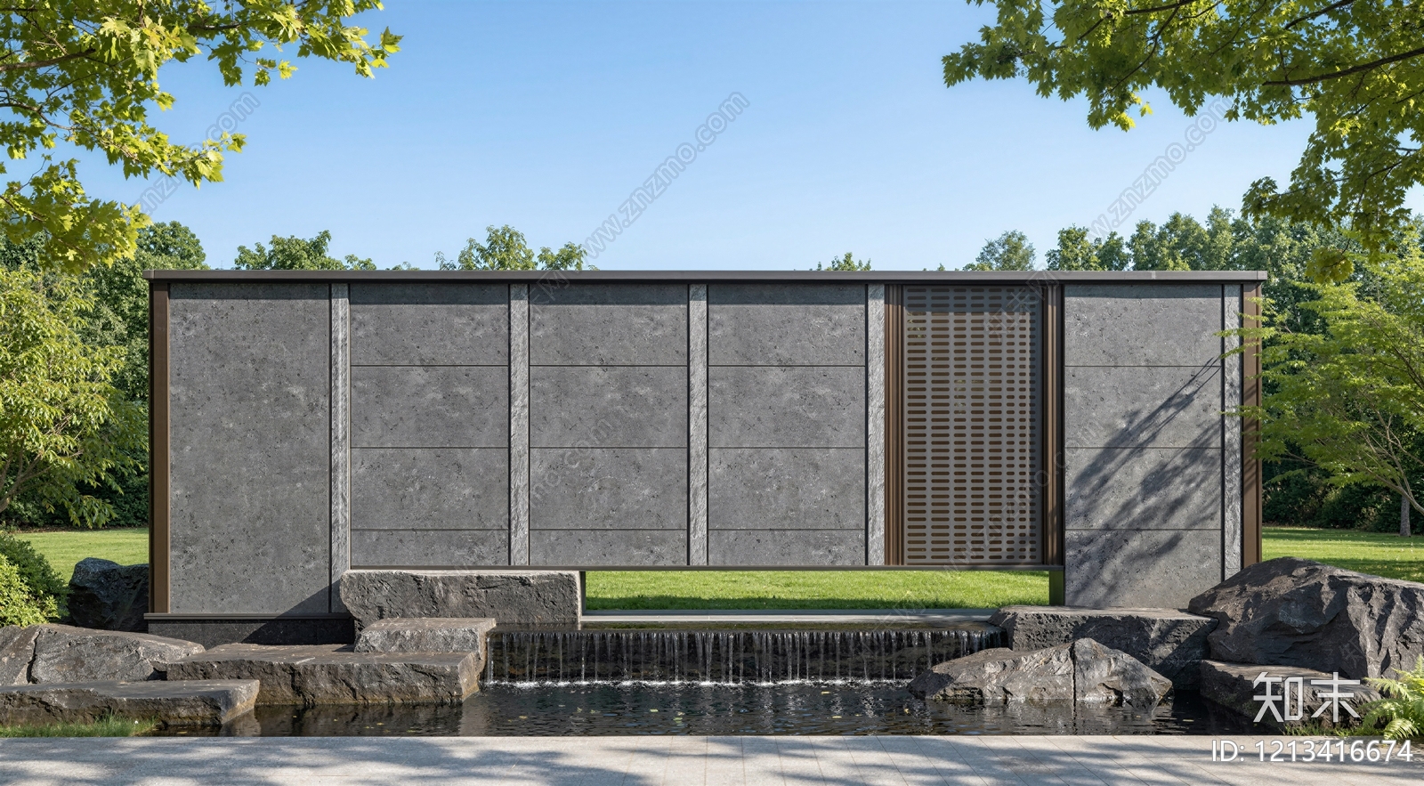 新中式景墙 新中式流水景墙 新中式景墙