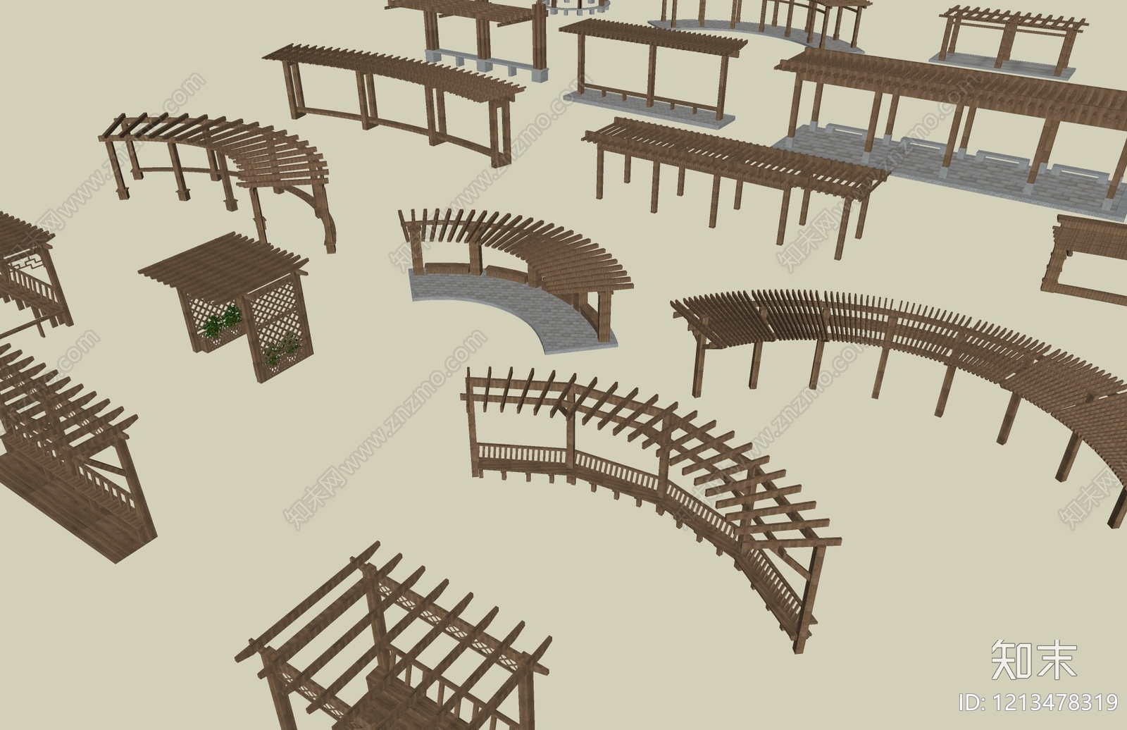 - 现代廊架 景观构筑物 景观构架 景观廊架 景观装置