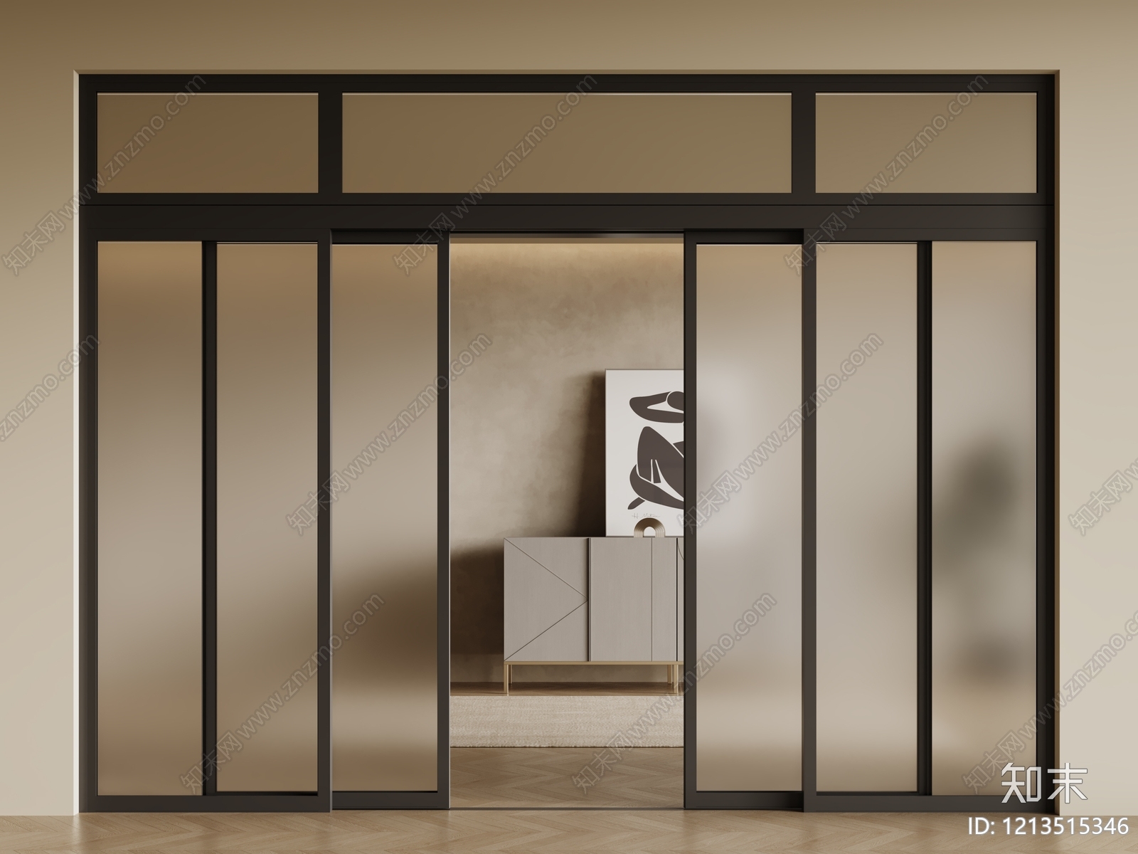 - 现代简约推拉门 推拉门 玻璃推拉门 花池 植物堆