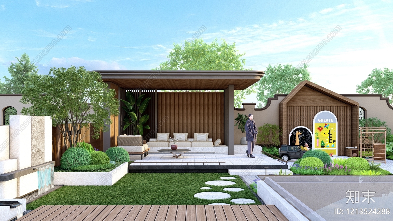 - 现代简约别墅庭院 园林庭院景观 景观园林小品 新中式日式禅意 植物墙花园