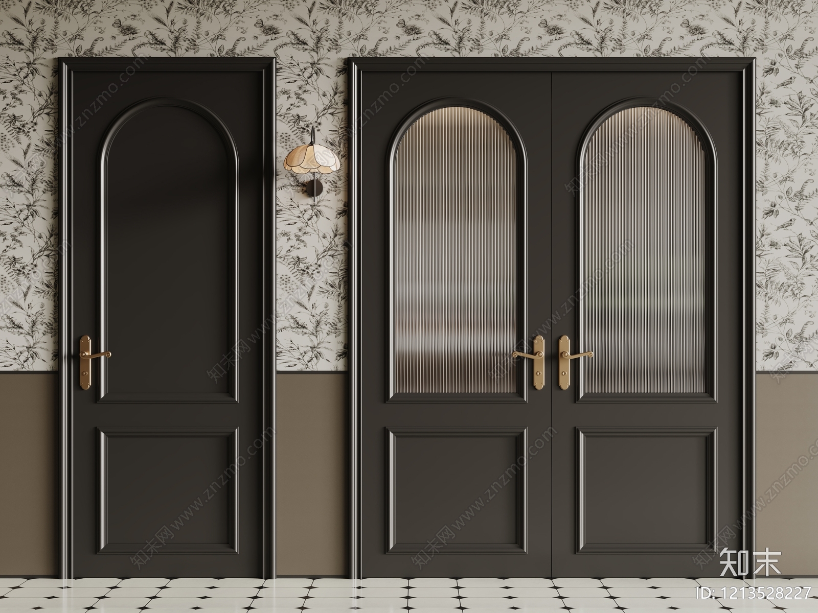 中古风双开门 法式复古双开门 单开门 长虹玻璃门 拱形门 卫浴门