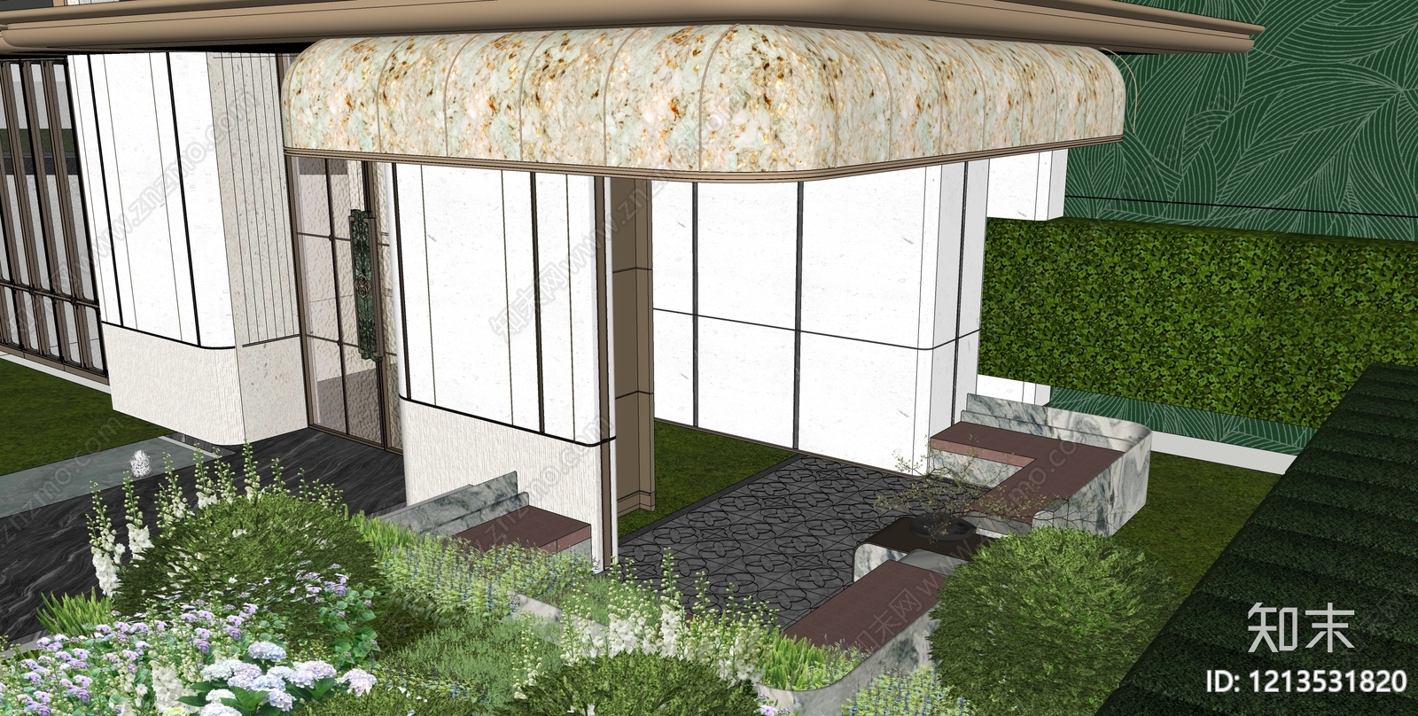 - 现代轻奢小区景观 单元入户 入户景墙