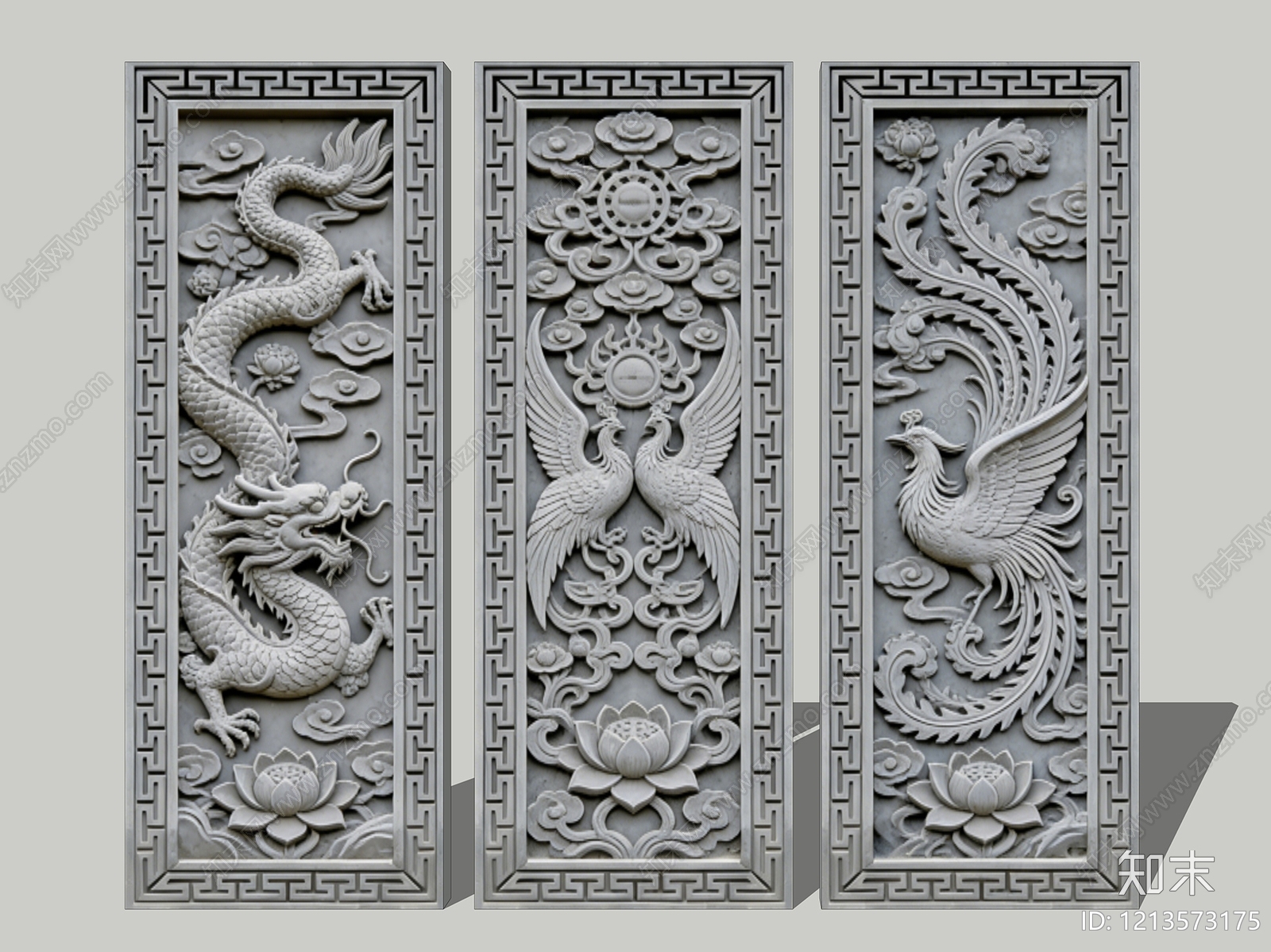 新中式浮雕 2D砖雕 龙凤呈祥 景墙照壁 浮雕砖雕 石材雕花