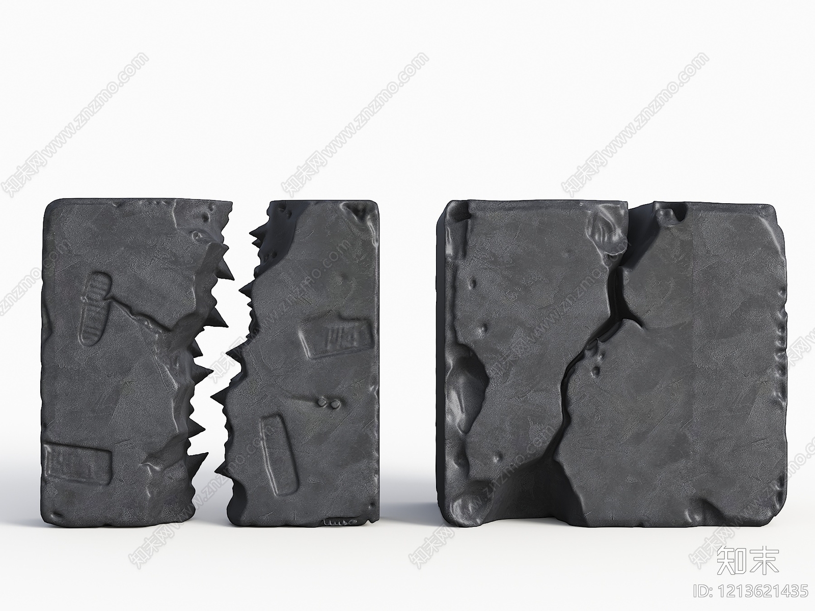 侘寂风其他景观小品 破损石头 裂缝墙 断裂墙 景观石头 石头茶几